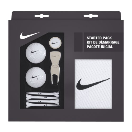 The Nike Starter Pack Golf Gift Set brings all the little details together in one package to help prepare you for the first round of the season. Whether on the first tee or on the last green, this set delivers the essentials with four biodegradable tees, a super-soft microfiber towel and a nickel-plated divot repair tool
